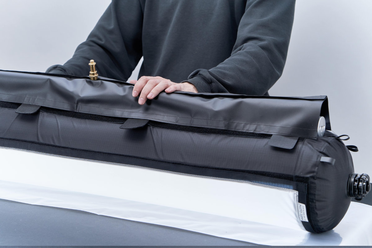 - Um die Airtube vor Knicken oder anderen Beschädigungen zu schützen, solltest du sie bei der Einlagerung oder zum Transport vorsichtig zusammenrollen. Wir empfehlen, sie im Karton aufzubewahren.