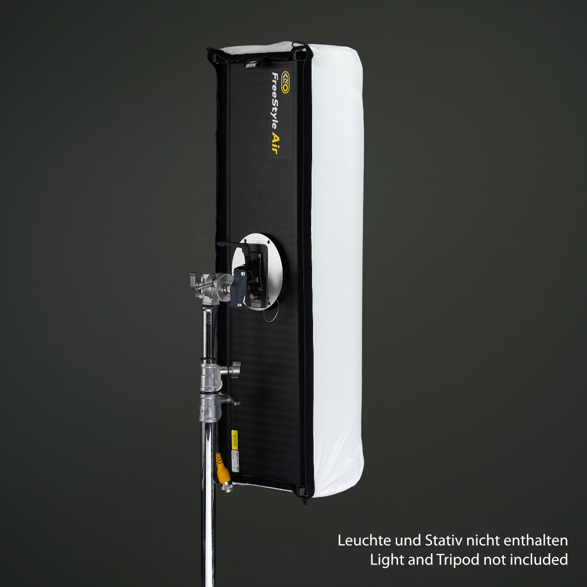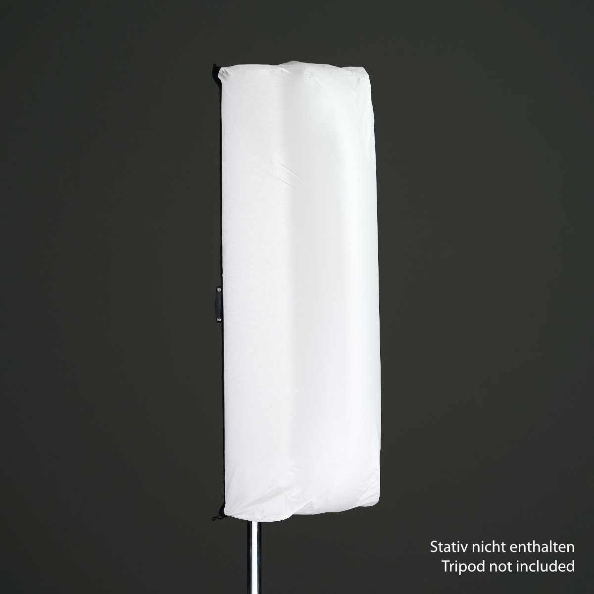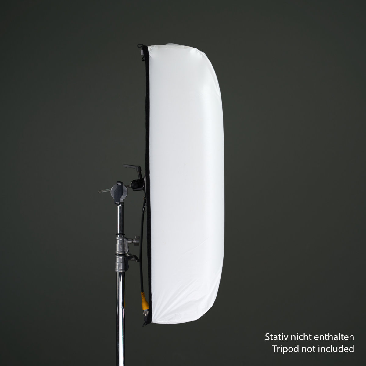 Die Airdome M ist eine aufblasbare Softbox mit einer Tiefe von 26cm. Der Abstand zwischen Diffuser und den LEDs ist größer als bei gängigen Softboxen. Die Schattenwirkung wird deutlich weicher.