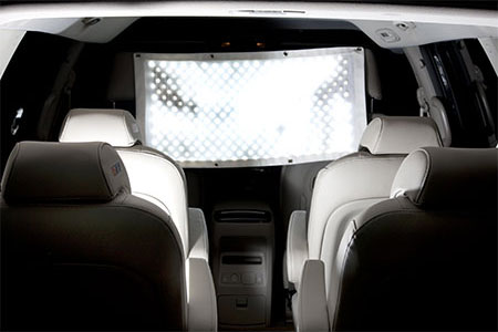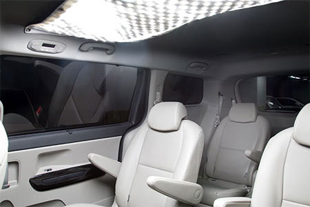 - Klettstreifen auf der Rückseite vernäht (hält zuverlässig am Stoff der Fahrzeugdecke)