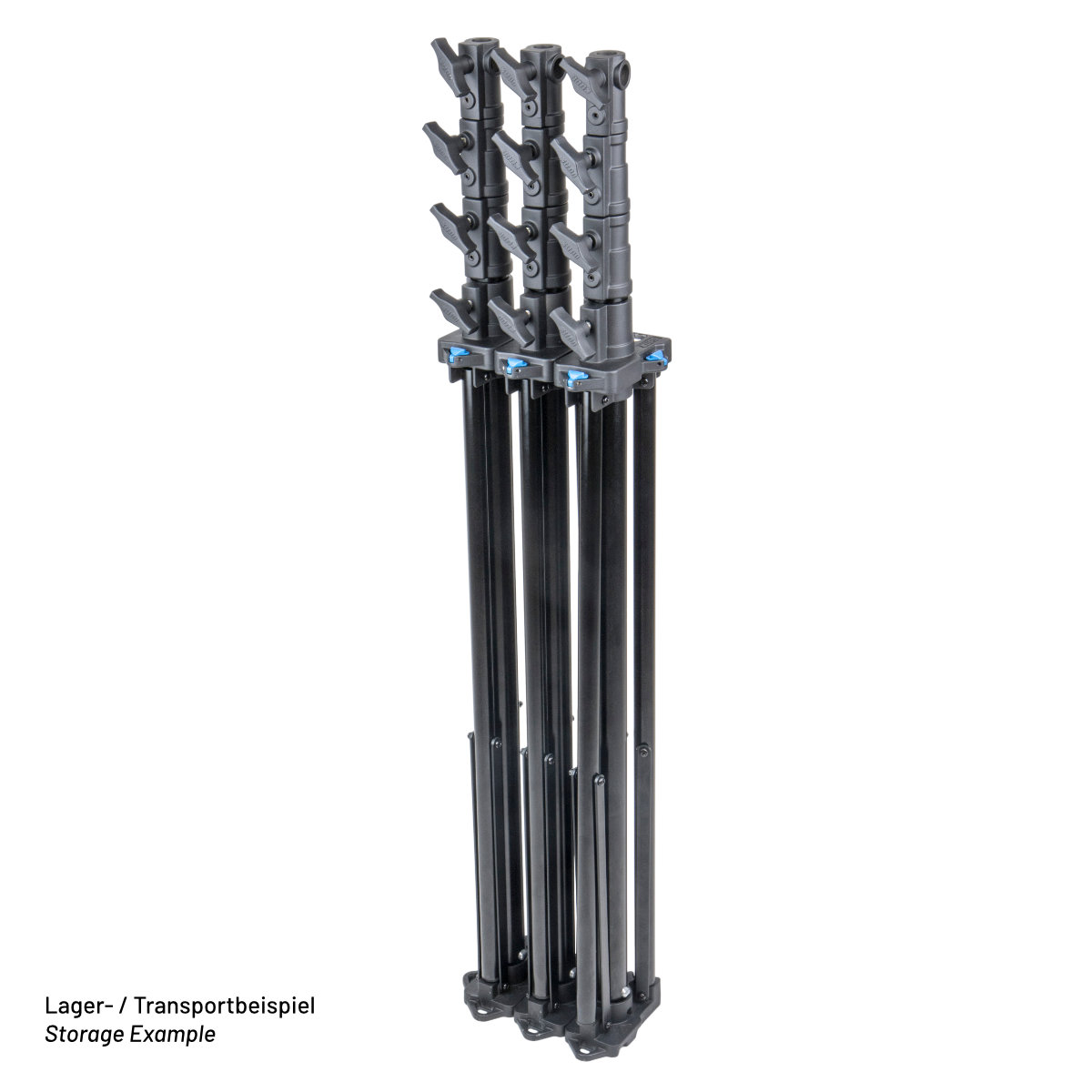 - Snap-Mechanismus (Patentiert): Ermöglicht das organisierte Zusammenstecken und Verstauen mit weiteren Snap Stativen.