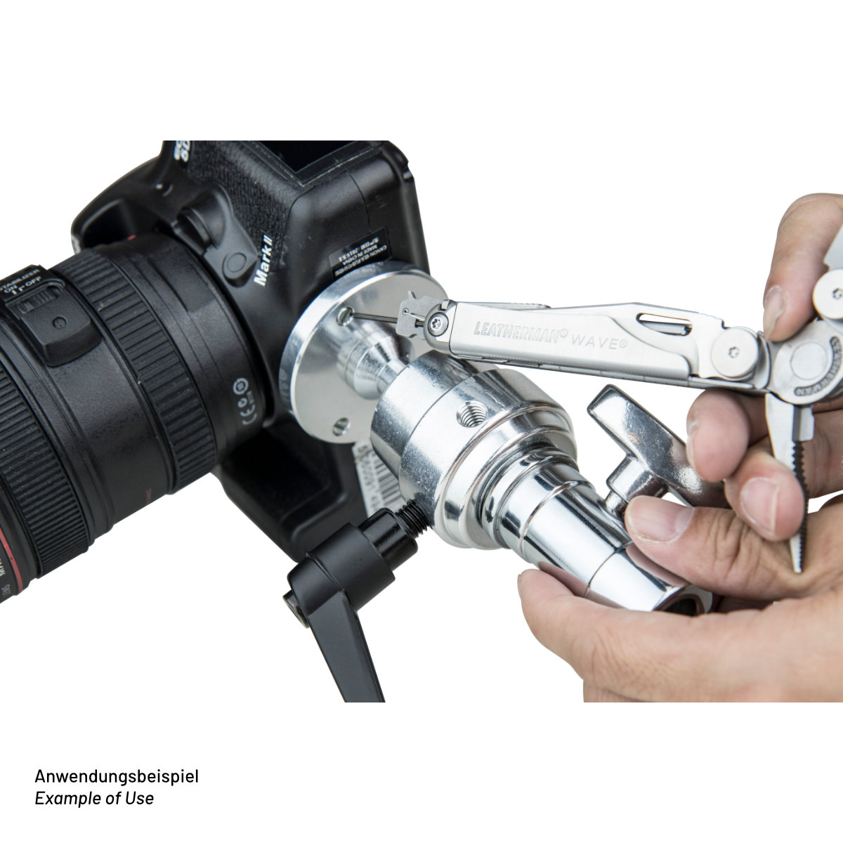 - Runde Kameraplatte (Ø 60 mm) mit drei Arretierungsschrauben