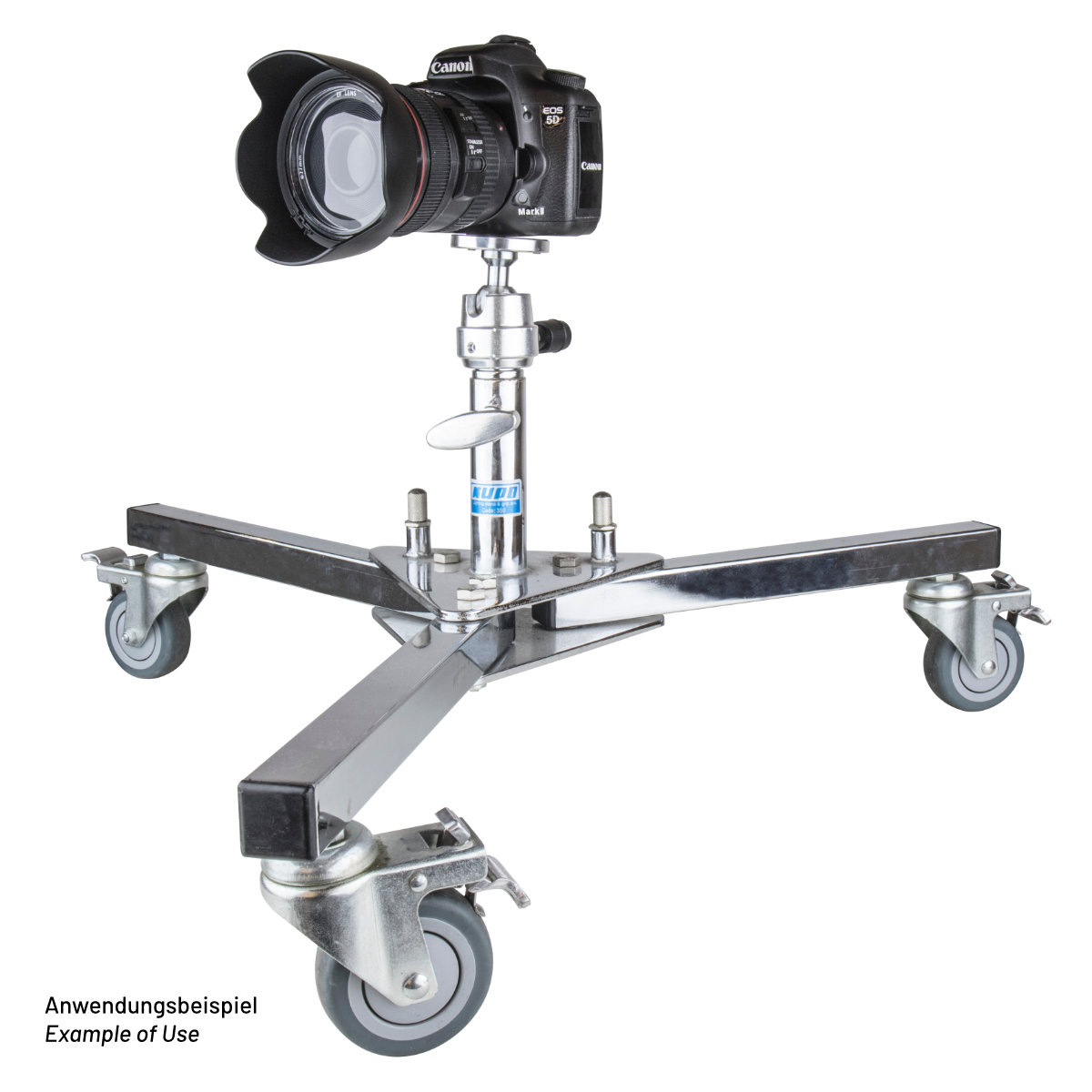 Rollensatz für Stative mit M10-Befestigung Der KC-100KUPO Rollensatz wurde entwickelt, um Ihren Lichtstativen maximale Mobilität und Flexibilität am Set zu verleihen. Die großen 100-mm-Rollen ermöglichen ein müheloses und leises Verschieben Ihrer Beleuchtungsausrüstung, was das Neupositionieren erheblich vereinfacht. Zusätzlich schützen die Rollen Ihre Studioböden vor Kratzern. Dank integrierter Feststellbremsen können Sie Ihre Stative jederzeit sicher und stabil an der gewünschten Position fixieren.Technische EckdatenRollen-Durchmesser: 100 mm (4 Zoll) für hohe Mobilität Mit Feststellbremsen: Gewährleistet ein sicheres Arretieren des Stativs an Ort und Stelle Befestigung: M10-Gewinde (Länge 17,5 mm) für einfache Montage Macht Lichtstative beweglich, schützt Böden und reduziert Geräusche Kompatible Stative (Auszug): 470, 473B, 481, 482T, 483T, 483BT, 483SHEigengewicht (Set): 2,34 kg (5.15lbs)Lieferumfang3x KC-100KUPO Rollen (Ø 100mm) 3x Integrierte M10-Befestigungsbolzen (Länge 17,5 mm) 3x Integrierte Feststellbremsen (pro Rolle)Artikelnr.: KC-100EAN: 6954016561878