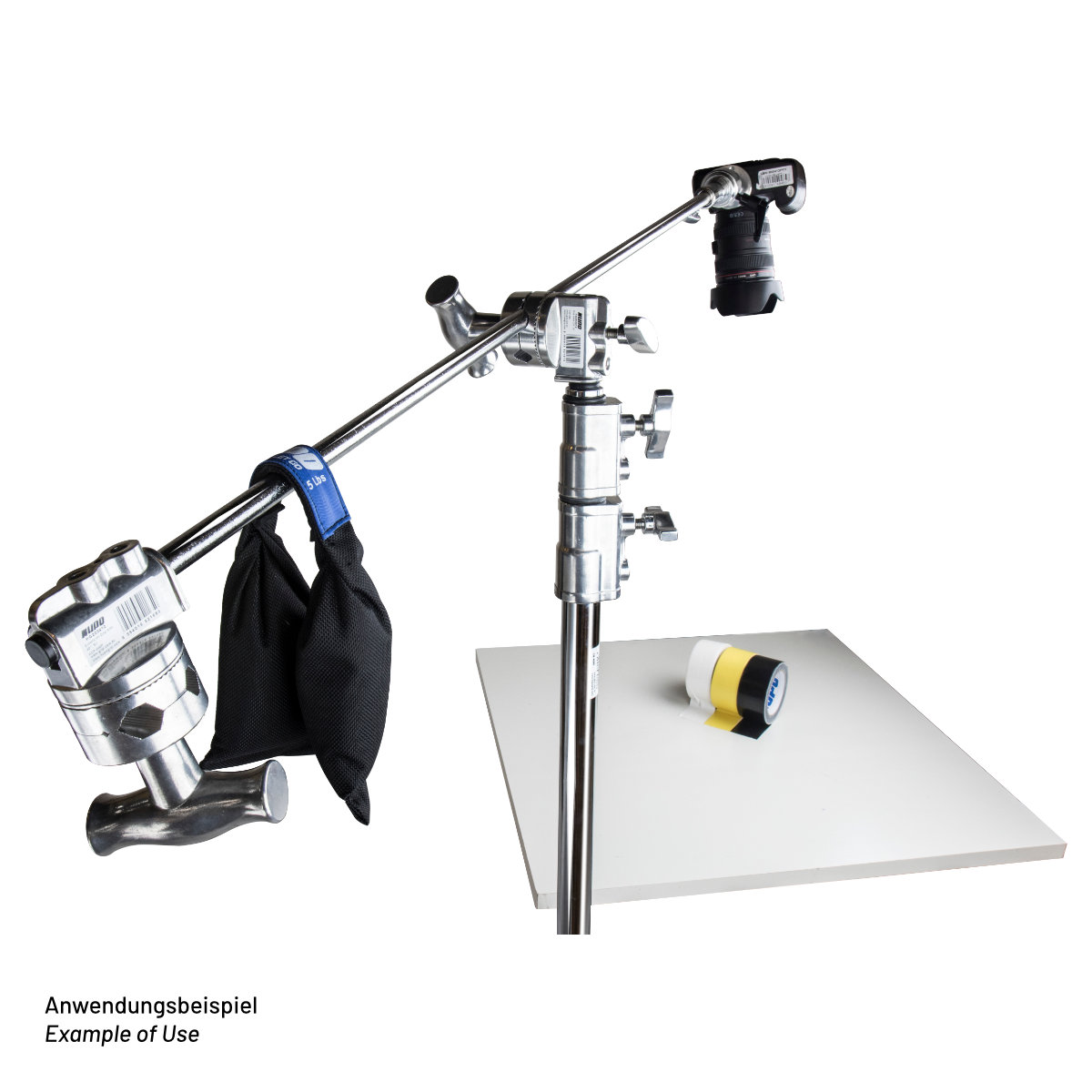 Schwerlaststativ mit Kurbel und Automatik-SperreDieses zuverlässige und robuste Kurbelstativ ist die ideale Lösung für professionelle Fotografen und Videografen, die schwere Beleuchtung, Diffusoren oder technisches Equipment sicher und mühelos anheben möchten. Mit einer beeindruckenden Traglast von bis zu 30 kg und einer maximalen Höhe von 380 cm ist das Stahlstativ perfekt für anspruchsvolle Studio- und Außeneinsätze geeignet. Die Kurbel mit automatischer Selbstsperrung garantiert dabei höchste Sicherheit und präzise Höheneinstellung.Technische Eckdaten2 Steigrohre, 3 SektionenDurchmesser Mittelsäulen: 55 mm, 45 mm, 38 mm Durchmesser Standbeine: 30 mmOberfläche: Schwarz pulverbeschichtet Material: Stahl Belastbarkeit: 30 kg (66,1 lbs) Geschlossene Länge: 181 cm (71,3") Mindestarbeitshöhe: 172,5 cm (67,9") Maximale Höhe: 380 cm (149,7") Aufstellfläche: 128 cm (50,4") Stativkopf: Universal-Stativkopf mit Junior- (1 1/8") und Baby-Aufnahme (5/8") und einem Baby-Zapfen (5/8") Nivellierbein: Gleicht Unebenheiten im Gelände aus und sorgt für sicheren Stand. Empfohlene Rollen: KC-100 Optionales Stativ-Pad: 483-BPGewicht: 22,8 kg (50,2 lbs)Besondere MerkmaleSehr hohe Tragkraft: Unterstützt Equipment bis zu 30 kg (66.1 lbs). Sehr hoch: Erreicht eine Arbeitshöhe von bis zu 380 cm (149.7"). Komfortable Höhenverstellung: Einfaches Anheben und Absenken per Kurbel, mit präziser Einstellung von 44 mm pro Umdrehung. Automatischer Sperrmechanismus: Selbstsperrende Funktion des Kurbelgriffs verhindert ein versehentliches Absinken der Last. TÜV ZertifiziertMultifunktional: Geeignet für Beleuchtung, aber auch für Funksender, Anti-Drohnen-Systeme, Radardetektoren und Überwachungskameras. LieferumfangStativ (Schwarz) Universal-Standkopf mit Junior- und Baby-Aufnahme sowie Baby Stud Nivellierbein (integriert)rutschfest TrittstufeArtikelnr.: 483BT EAN.: 6954016560697