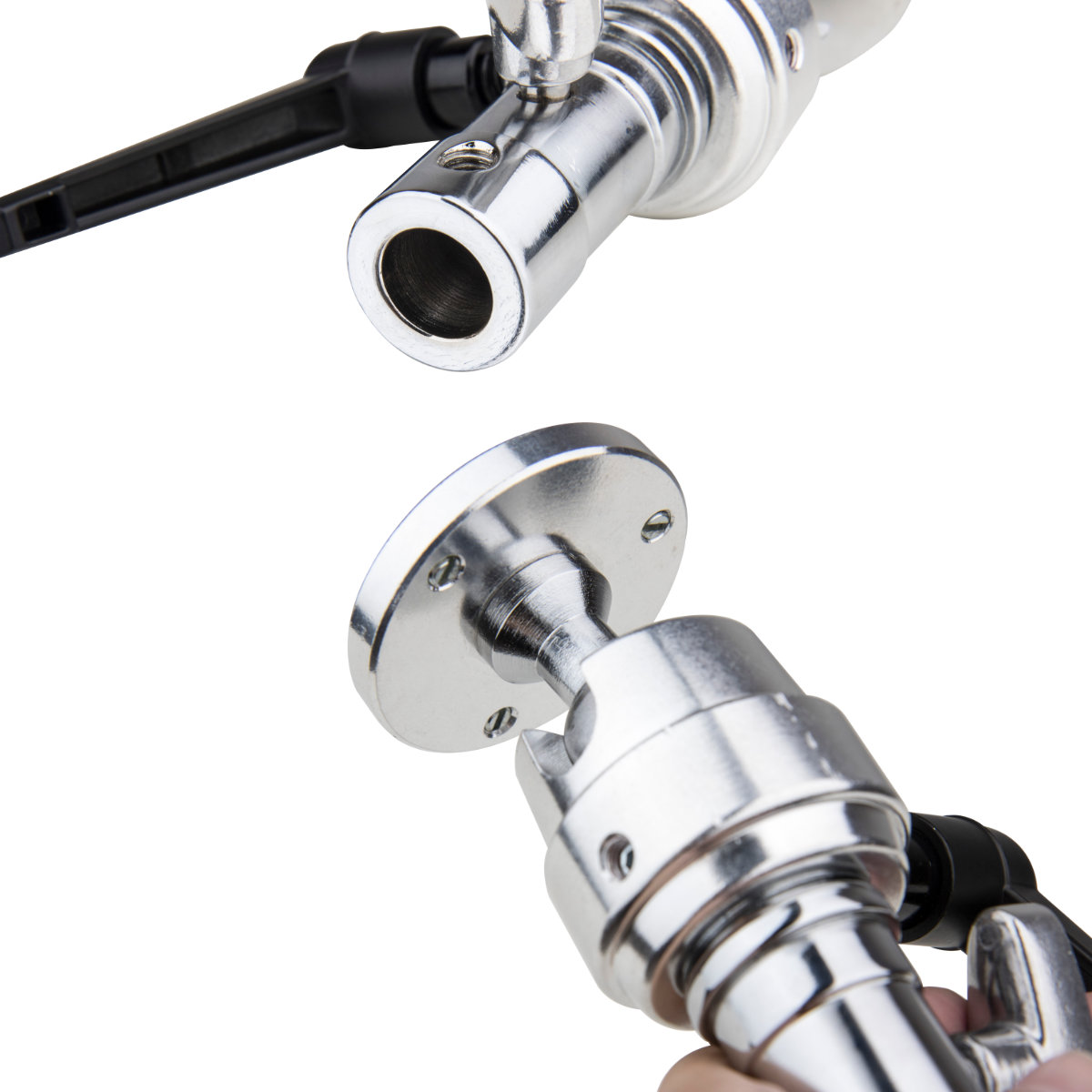 - Hohe Flexibilität: Ermöglicht 360-Grad-Rotation und eine Abwinkelung von 115 Grad (Pivoting), Ideal für Überkopfaufnahmen und Montage am Haltearm eines C-Stands.