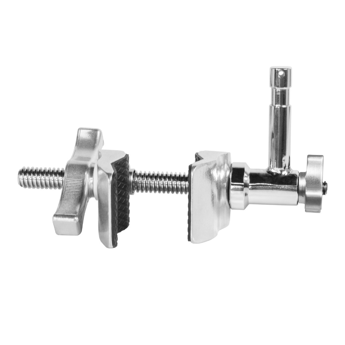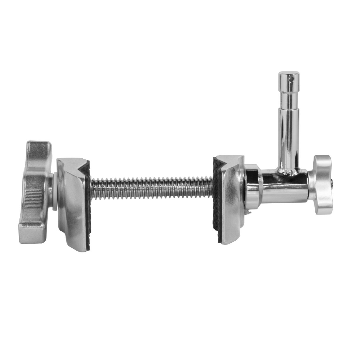 Die KCP-608 ist eine Montageklemme aus Aluminium und Stahl. Sie wurde entwickelt, um Beleuchtungs- und Film-Equipment sicher und flexibel an verschiedensten Oberflächen zu befestigen. Der fest verbaute Baby-Pin ist im 90° Winkel zur Hauptachse ausgerichtet und kann in 45° Stufen um die eigene Achse gedreht werden. Über zwei Flügelschrauben wird die Position arretiert. Gummierte Innenseiten der Klemmbacken geben zusätzliche Stabilität und schonen die Oberfläche.