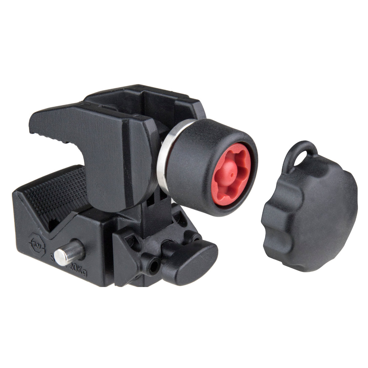 Leichte Mini Super Clamp für Rohre bis 35mmDie Super Claw ist die extrem leichte und kompakte Mini-Version der bewährten Convi Clamp. Mit nur 130 g Gewicht ist diese vielseitige Klemme ideal, um Kameras, Lichter, Monitore und Zubehör bis zu 5 kg schnell und sicher zu befestigen. Die Super Claw ist mit 1/4''- und 3/8''-Gewinden ausgestattet. Dank der speziellen Klemmbacken mit Gummieinlagen hält die Klemme zuverlässig auf runden und rechteckigen Objekten. Technische EckdatenFarbe: Schwarz Material: Aluminium Gewinde an der Klemmbacke: 1/4"-20-Innengewinde & 3/8"-16-InnengewindeKlemmbereich Rohrdurchmesser: 13 mm bis 35 mm (0,51" bis 1,37")Klemmbereich flache Oberflächen: 5 mm bis 20 mm (0,19" bis 0,78")Tragfähigkeit/Belastbarkeit: 6 kg (13,2 lbs)Gewicht: 130 gBesondere MerkmaleRobustes Design: Zwei Klemmbacken aus Aluminium sorgen für Stabilität und Langlebigkeit. Sicherer Halt: Mechanisch verzahnte Gummieinlagen in den Klemmbacken bieten einen starken Halt. *Ergonomisch gegossener Drehknopf ermöglicht einen besseren und festeren Griff. Vielseitige Anschlüsse: 1/4''- und 3/8''-Innengewinde zur gleichzeitigen Nutzung, ideal für enge Räume.Belastbarkeit: Hält Zubehör bis zu 5 kg (11 lbs). Geschmeidige Bedienung: Eine innenliegende Stahlfeder gewährleistet eine reibungslose Bewegung der Klemmbacken beim Festziehen.Lieferumfang1x Super Claw KlemmeAdapter von 3/8"-16-Außengewinde auf 1/4"-20-AußengewindeArtikelnr.: KCP-730BEAN: 6954016522893