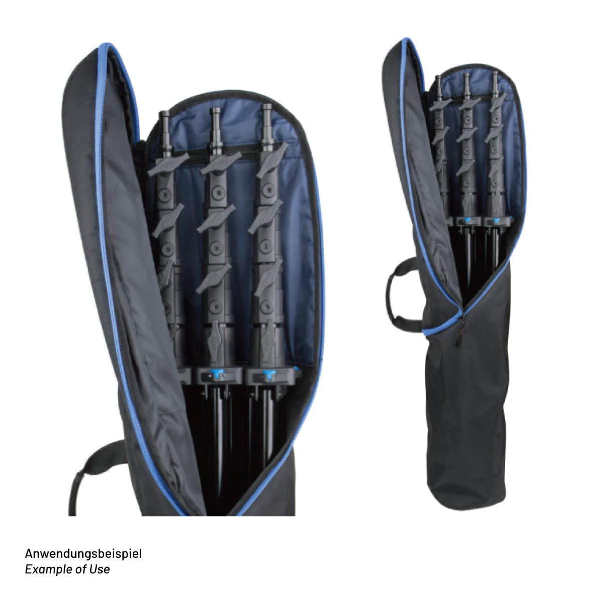 Die Kupo KSB-030 ist eine strapazierfähige, gepolsterte Tasche für bis zu 3 Stative mit einer Länge von 107cm. Der umlaufende Reißverschluss ermöglicht leichtes Ein- und Ausladen, während der verstellbare Schultergurt und die zusätzlichen Griffe komfortables Tragen ermöglichen.