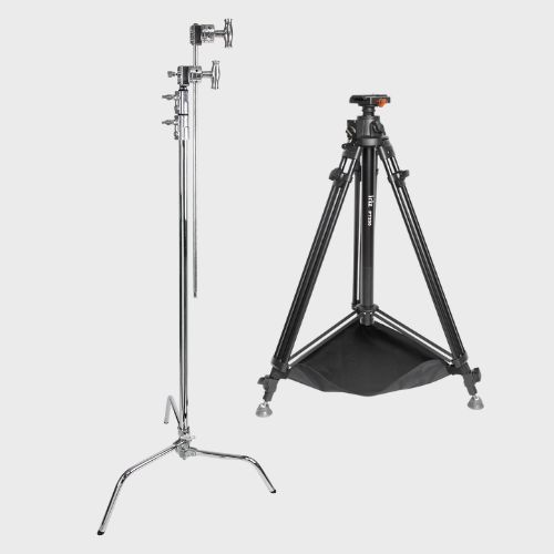Robuste C-Stands, besonders leichte Stative, Modelle für große Höhen und passendes Zubehör wie Rollen oder Steintaschen