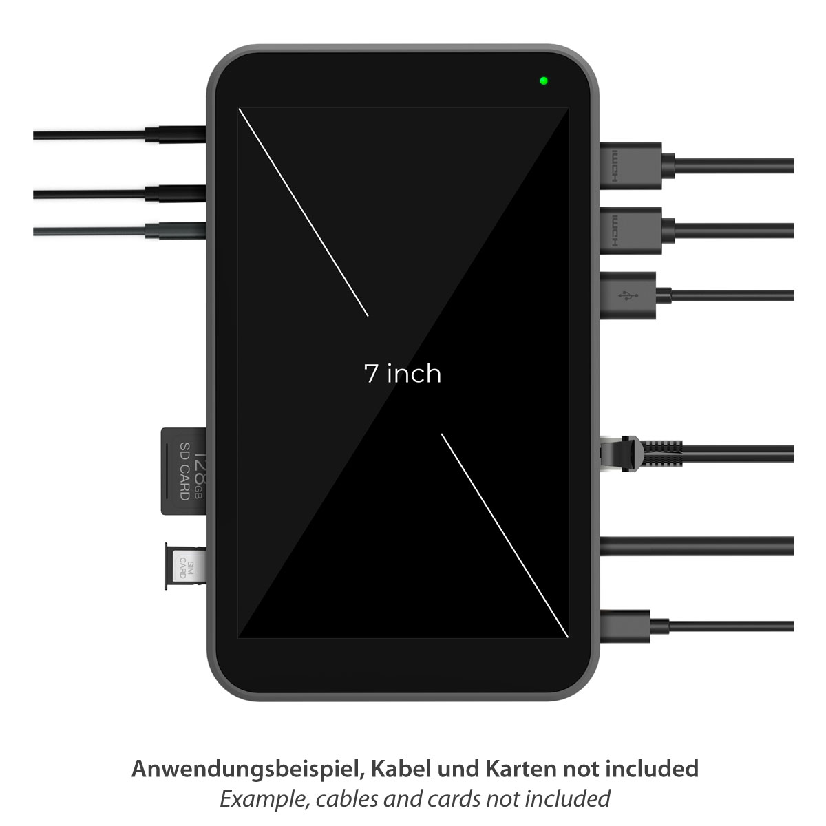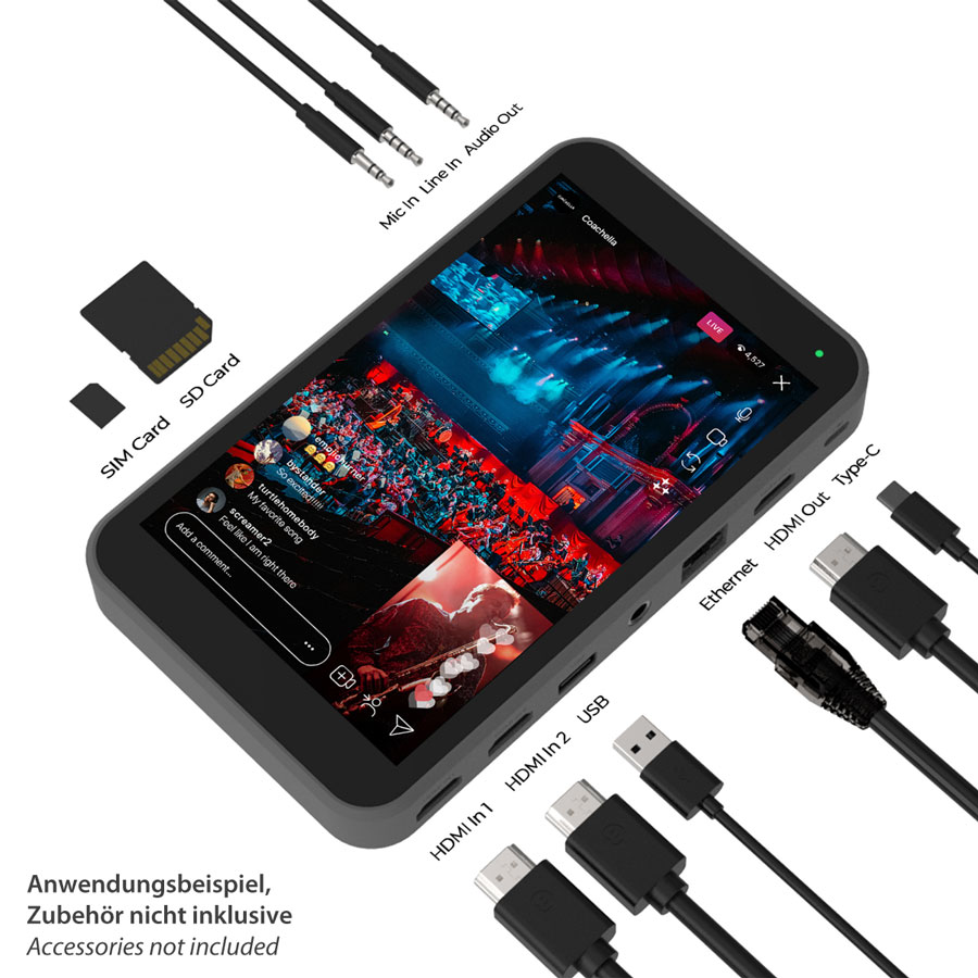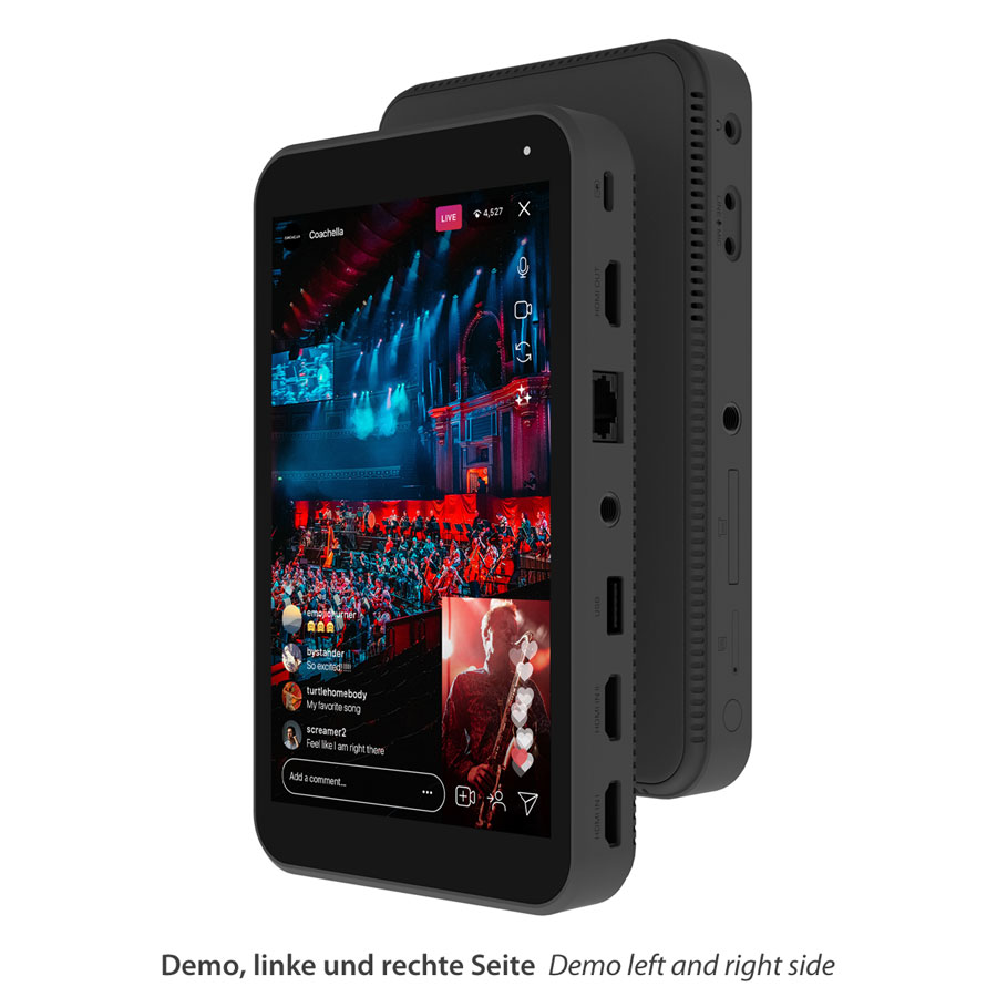 - 2x HDMI-, 1x USB-Video Input, 7" Touchscreen
