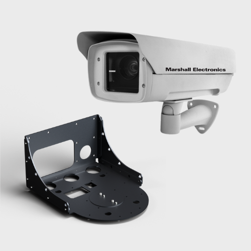 Outdoor-Gehäuse für PTZ- und Block-Kameras für zuverlässigen Schutz vor Regen, Schnee, Staub und Vandalismus. Für Indoor-Installationen gibt es, passend zur Kamerafarbe, dezente Montagemöglichkeiten für Wand und Decke.