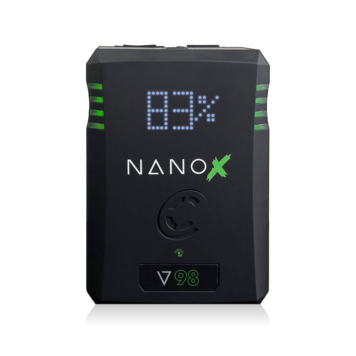 Der Nano-V98X ist ein kompakter V-Mount Akku mit einer Kapazität von 98Wh. Zur Stromversorgung von Zubehör wurden an der Oberseite ein D-Tap und ein USB-C Port verbaut. Der USB-C Port funktioniert als Ein- und Ausgang. Du kannst den Akku einfach über ein USB-Kabel laden und als Powerbank für dein Notebook nutzen.