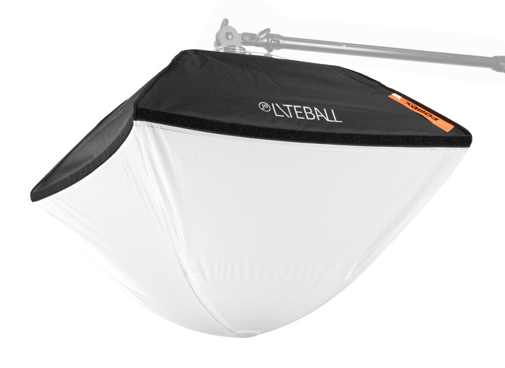 The Liteball LTBK6 is ideal for productions that require soft light from above. Suitable for the flexible FL600 area luminaire. A cover is included in the delivery. The 4 side panels can be rolled up separately. The reflective inner coating of the side walls helps you to direct the light specifically in one direction.