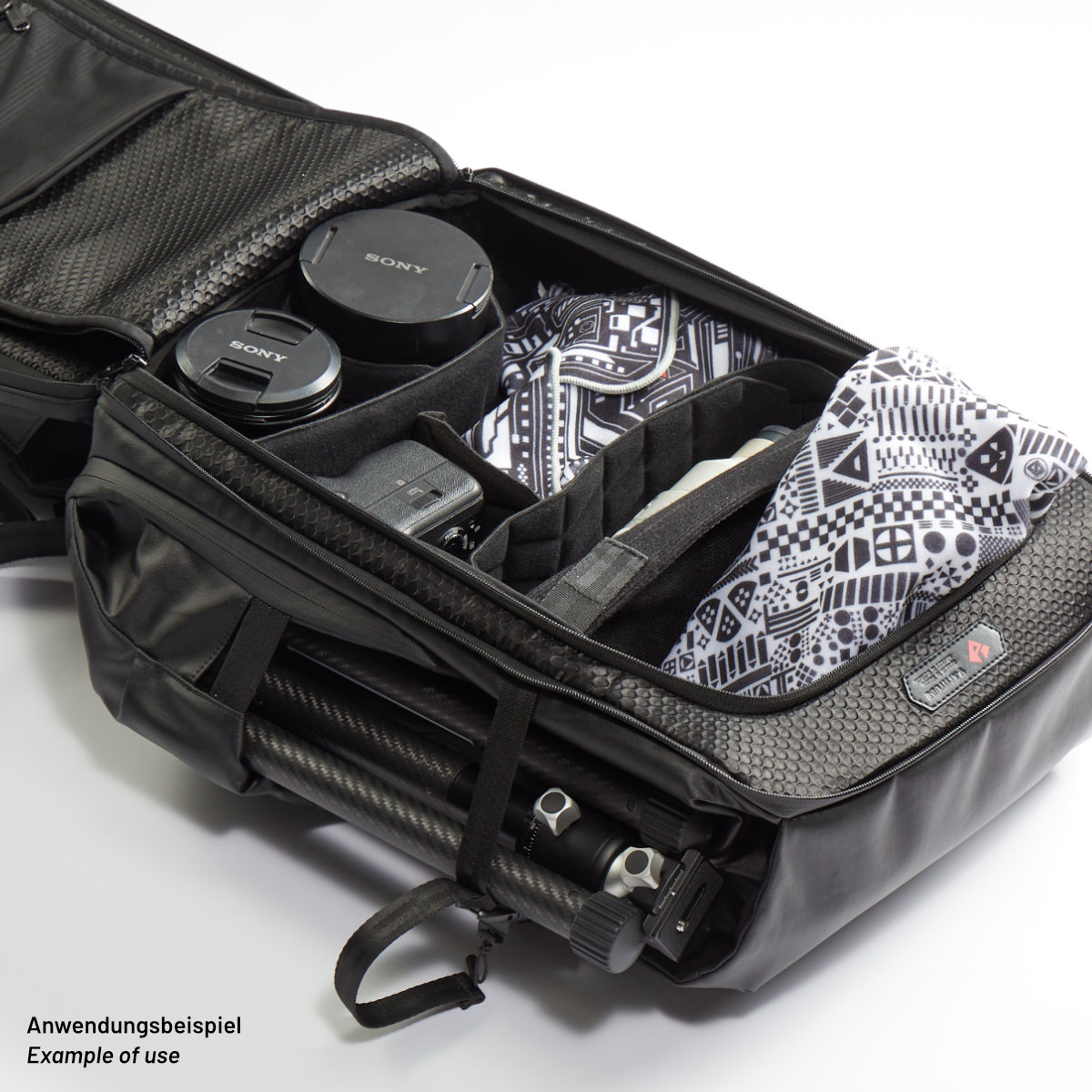 - 20L Variante: Platz für ca. 1-2 Kamerabodies + 3-4 Objektive + + 16" dünnes Notebook oder 11" Tablet