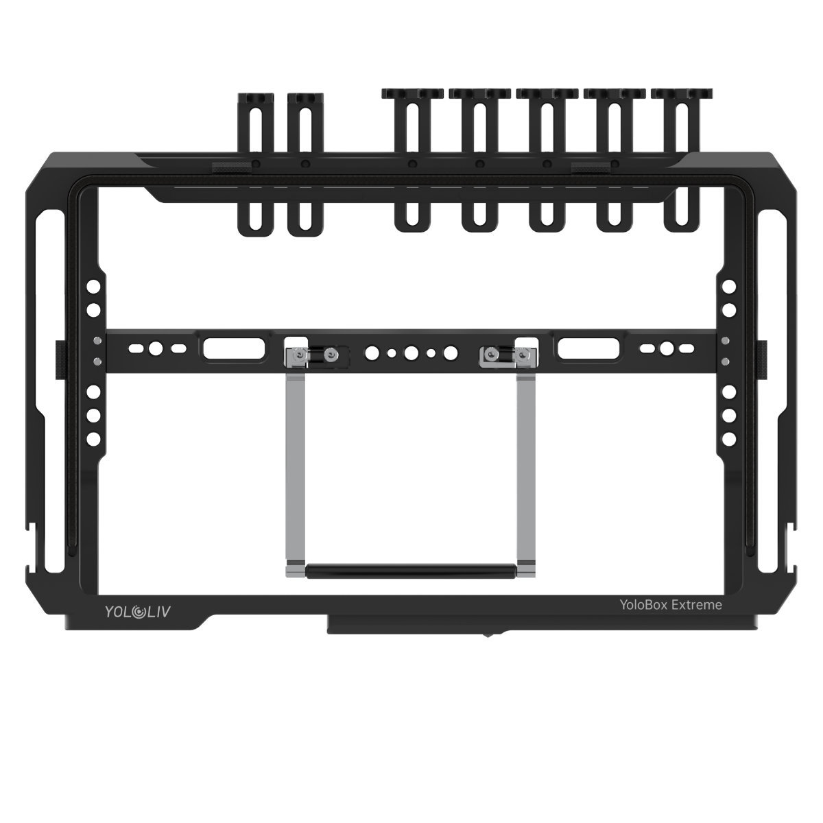 Das Gehäuse ist eine passgenaue Schutzhülle für die YoloBox Extreme – ein All-in-One-Streaminggerät. Es besteht aus leichtem, robustem Aluminium und bietet praktisches Zubehör wie eine schnell montierbare Sonnenblende, einen integrierten Standfuß für den Tischgebrauch und eine verstellbare Kabelklemme. Ideal für den professionellen Einsatz, schützt es das Gerät und verbessert gleichzeitig die Handhabung und Erweiterbarkeit.